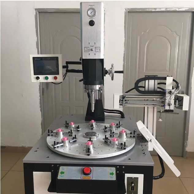 我厂研发的这款超声波塑焊转盘机是集自动焊机、焊接曲线实时显示、品质管控、自动卷膜、自动下料、自动分拣等为一体的超声波应用集成设备,主要应用于超声波塑料焊接。
