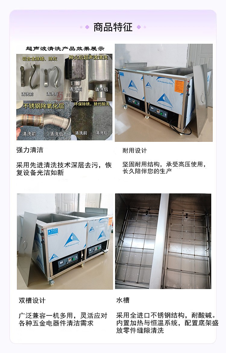 广州双槽超声波清洗机工业厂家两槽多槽五金电器零件除锈除油除污清洗