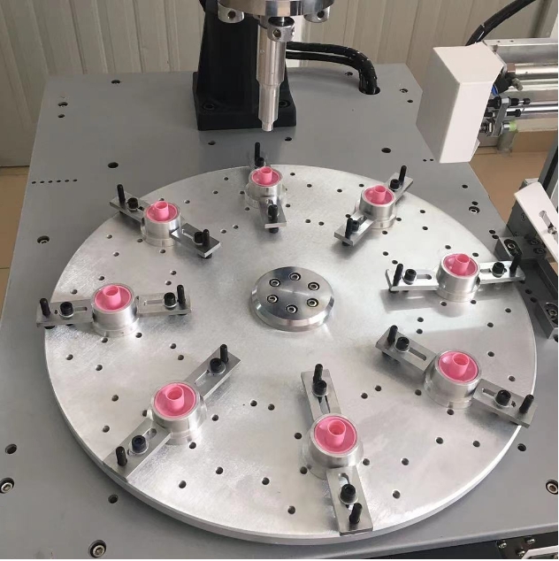 我厂研发的这款超声波塑焊转盘机是集自动焊机、焊接曲线实时显示、品质管控、自动卷膜、自动下料、自动分拣等为一体的超声波应用集成设备,主要应用于超声波塑料焊接。