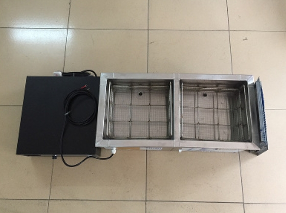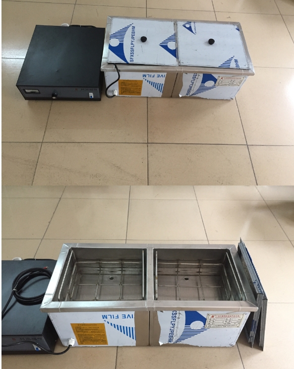 设备内槽尺寸320x290X150mm,2个槽连体,外尺寸大约720x350X270mm。功率为每个槽为360W,2个槽为720W,设备配一个超声波发生器,2个槽同时启动,和关闭。